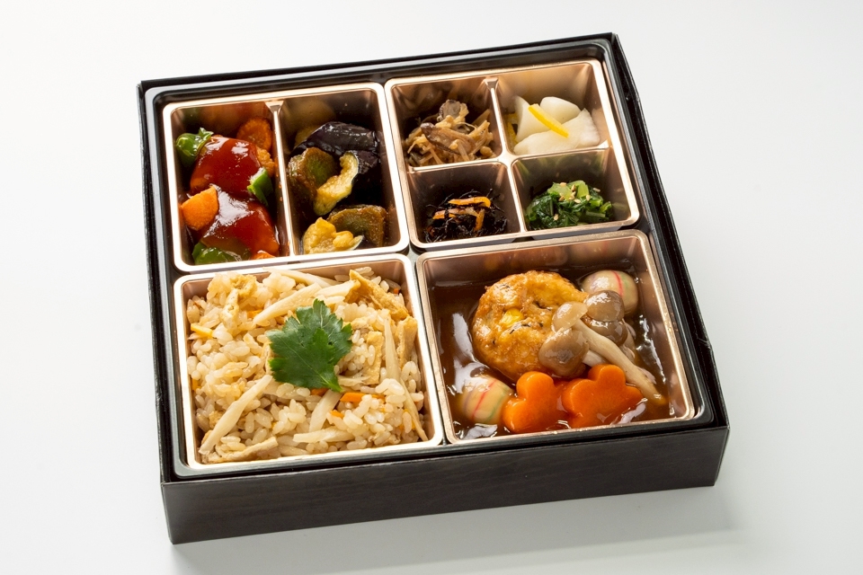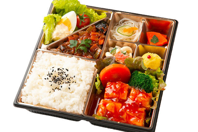 甘酢餡が絡む揚げ豆腐と相性抜群のピラフにオリジナルラタトゥイユが楽しめる健康的な一品です。ベジタリアンやハラールの皆様以外、特に女性にお勧めのヘルシー弁当です。
