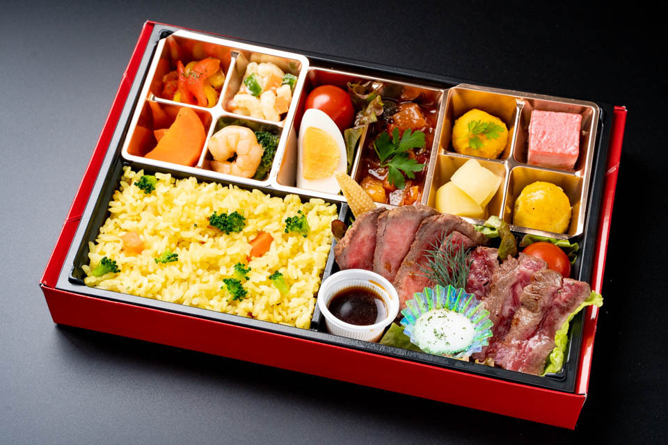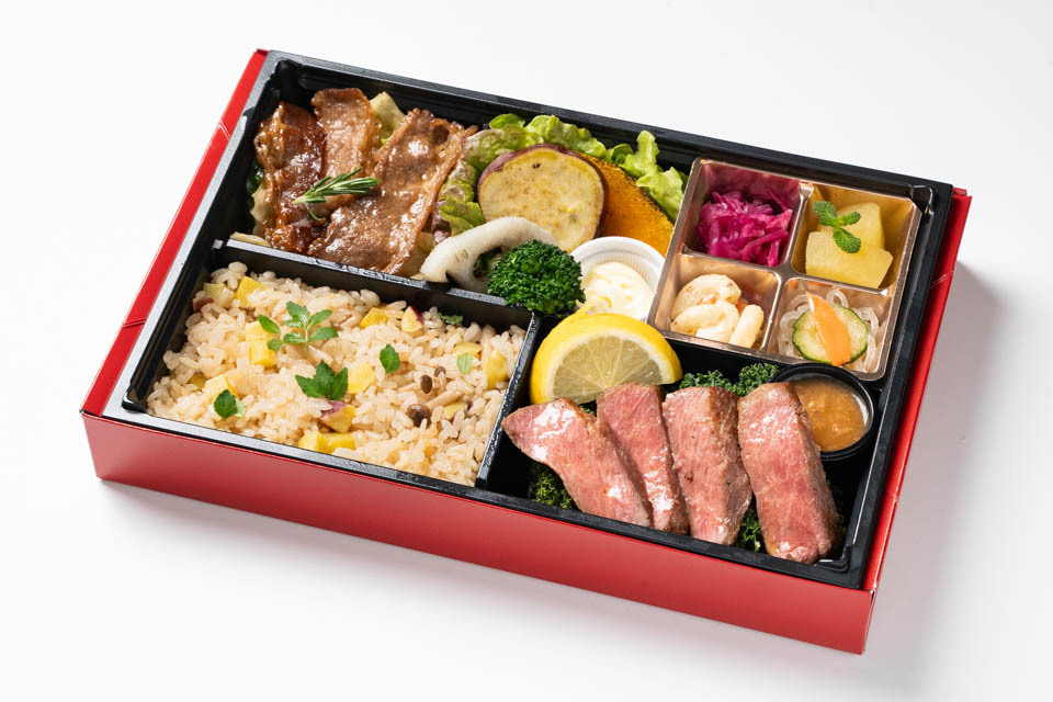 和牛ステーキのお弁当をリニューアルしました。牛肉は低温殺菌調理を施しております。柔らかい和牛の食感をお楽しみください。